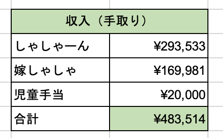 収入については総額ではなく、手取り金額を記載しています