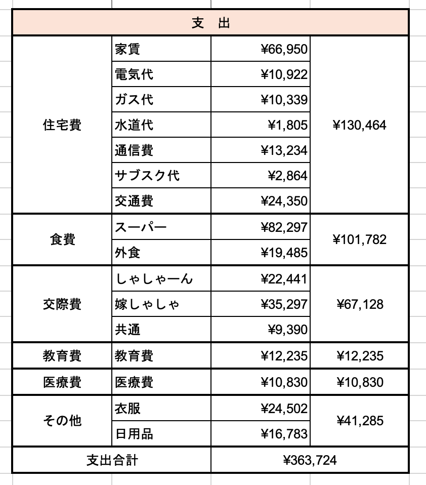2025年10月の支出は363,724円でした