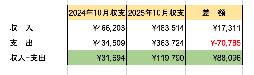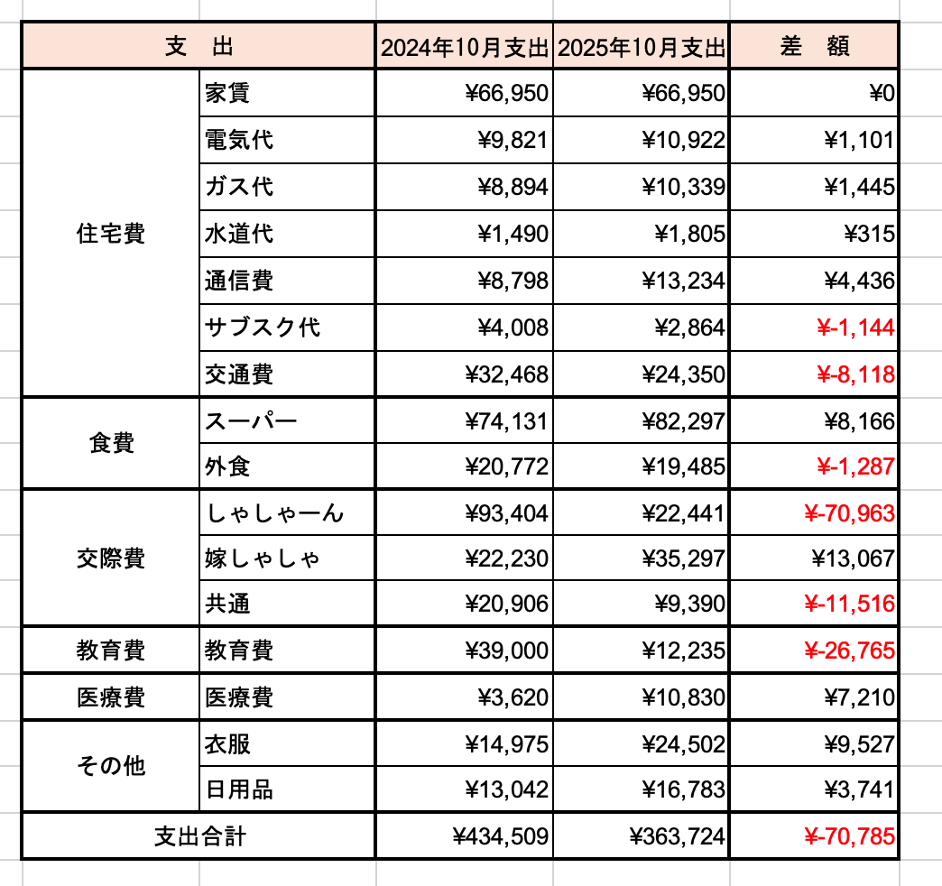 今回は2025年10月の家計簿について記事にしました