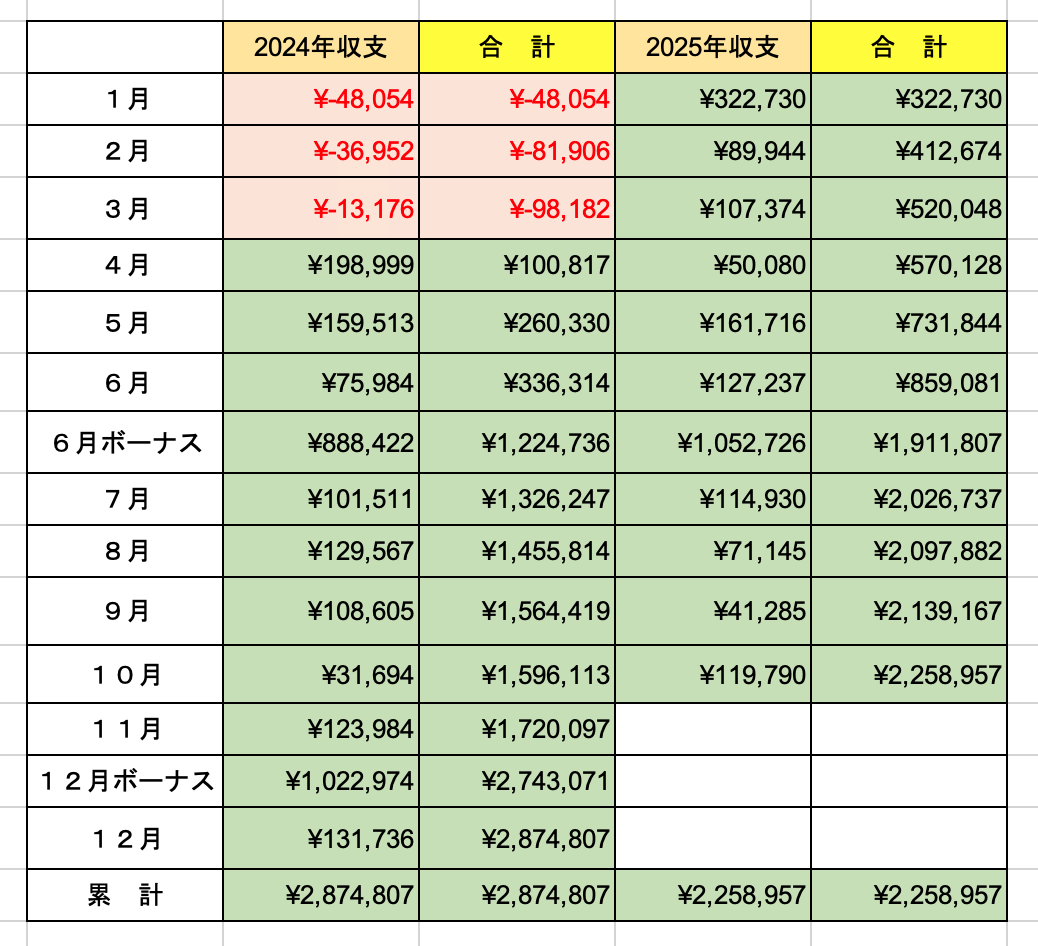 年間収支は+2,258,957円でした