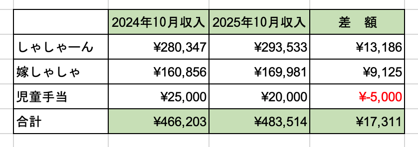 2025年10月の収入は483,514円でした