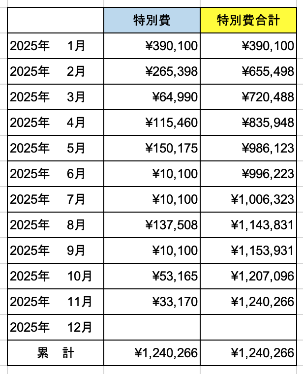 今回は2025年11月の特別費について記事にしました。