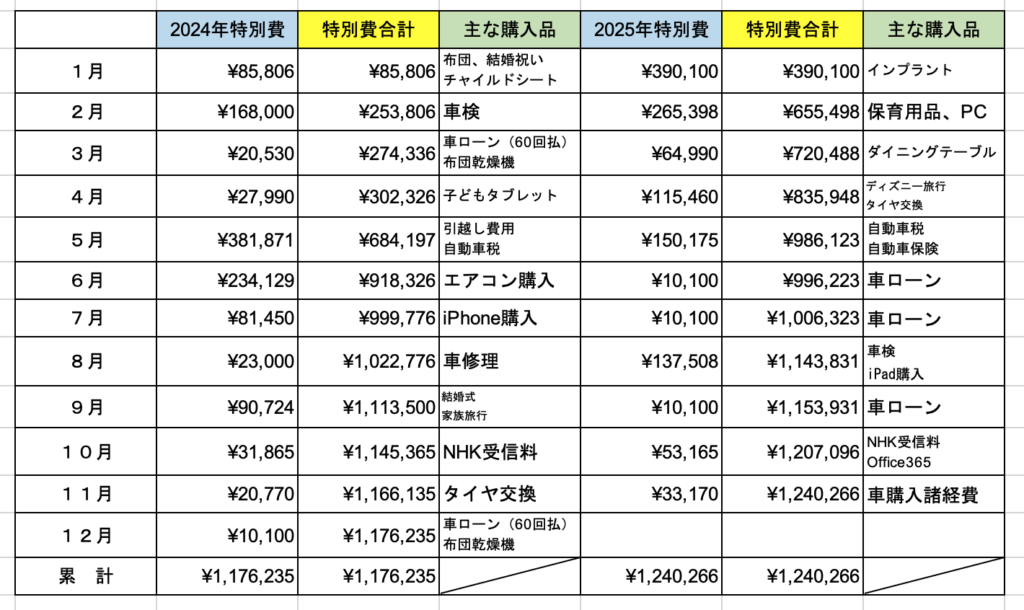 特別費の予算は100万円に設定していましたが、余裕で超えてしまいました😭